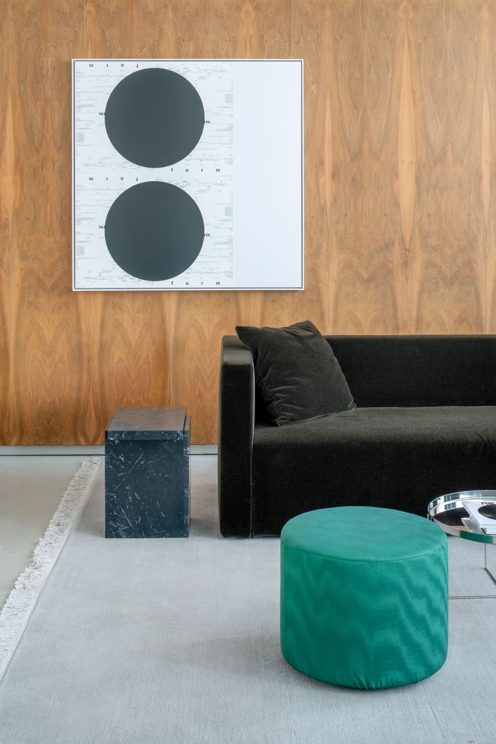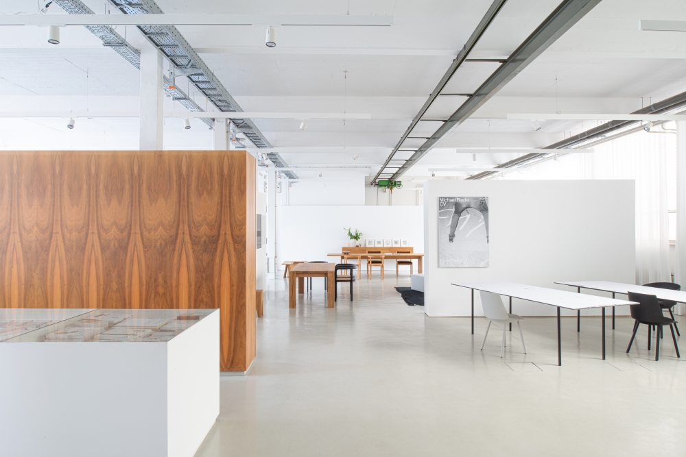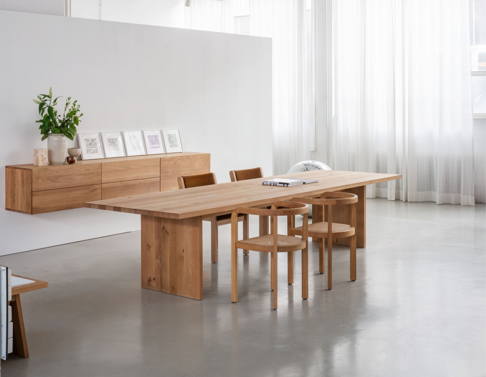 Riedel’s work, blurring the boundaries between applied graphics and free art, entered into a subtle dialogue with e15’s material‑driven, minimalist design. Classics from our archive stand alongside newer additions, all defined by craftsmanship, natural materials, and architectural clarity.