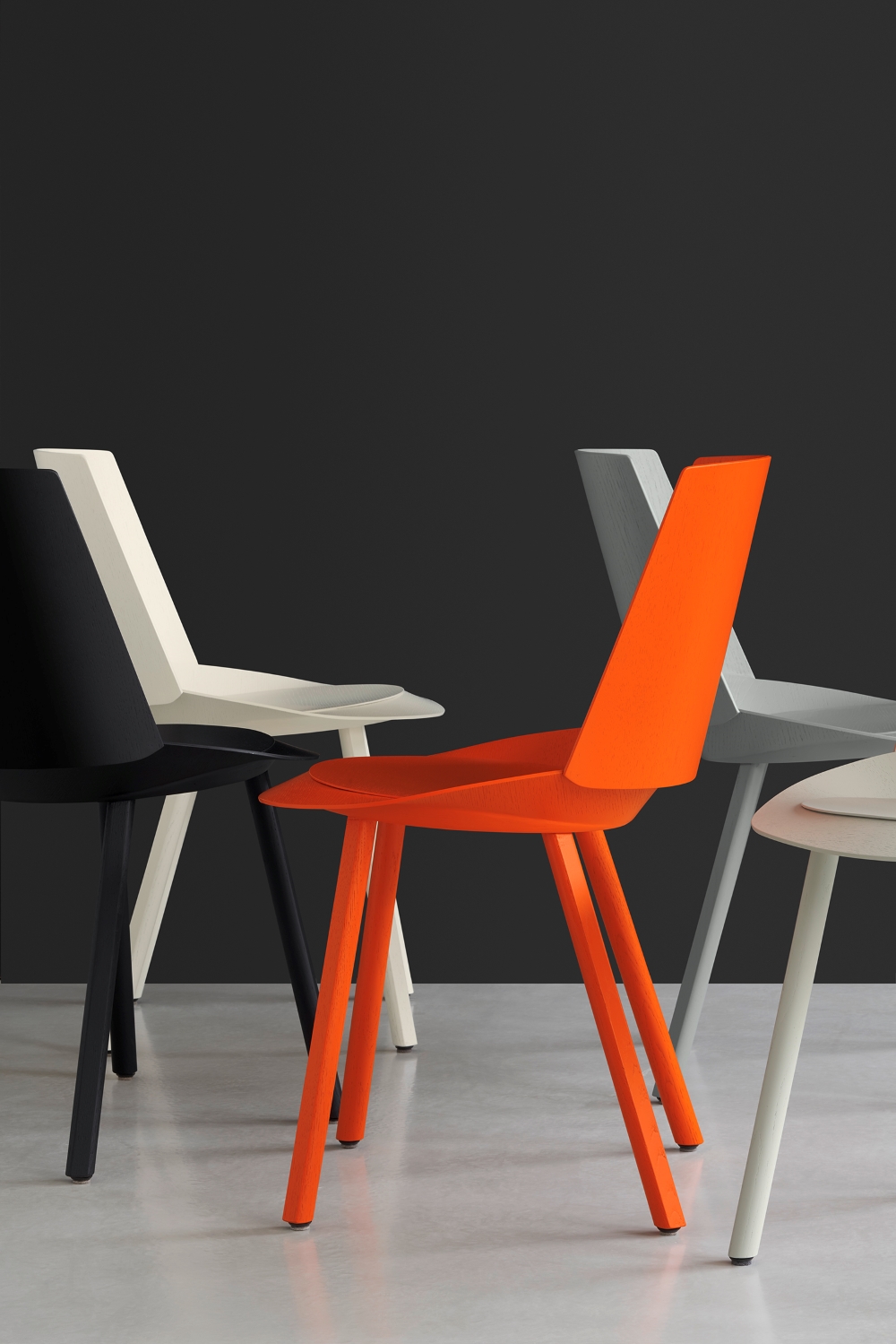 In his search for an ergonomic seating shell without involving costly tooling material, Stefan Diez was inspired to apply techniques used for the construction of wooden gliders and airplanes. The result is an original silhouette made with modern construction methods and highlighted with bold colour that has since made HOUDINI a design classic, and an identifiable icon for e15.