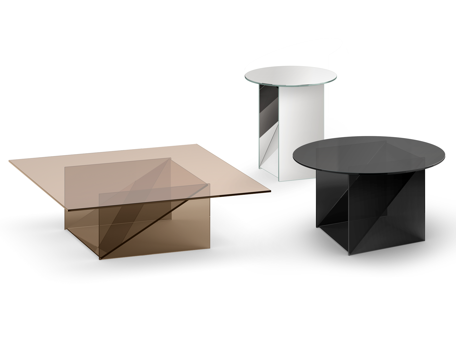Der Couchtisch KAISA ist eine großzügig proportionierte Ergänzung der gleichnamigen skulpturalen Beistelltischfamilie aus Glas.
